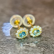 アイスブルーカラーのダイヤモンドとホワイトダイヤモンドのコントラストがとても美しく品のあるピアスに仕上がっています。