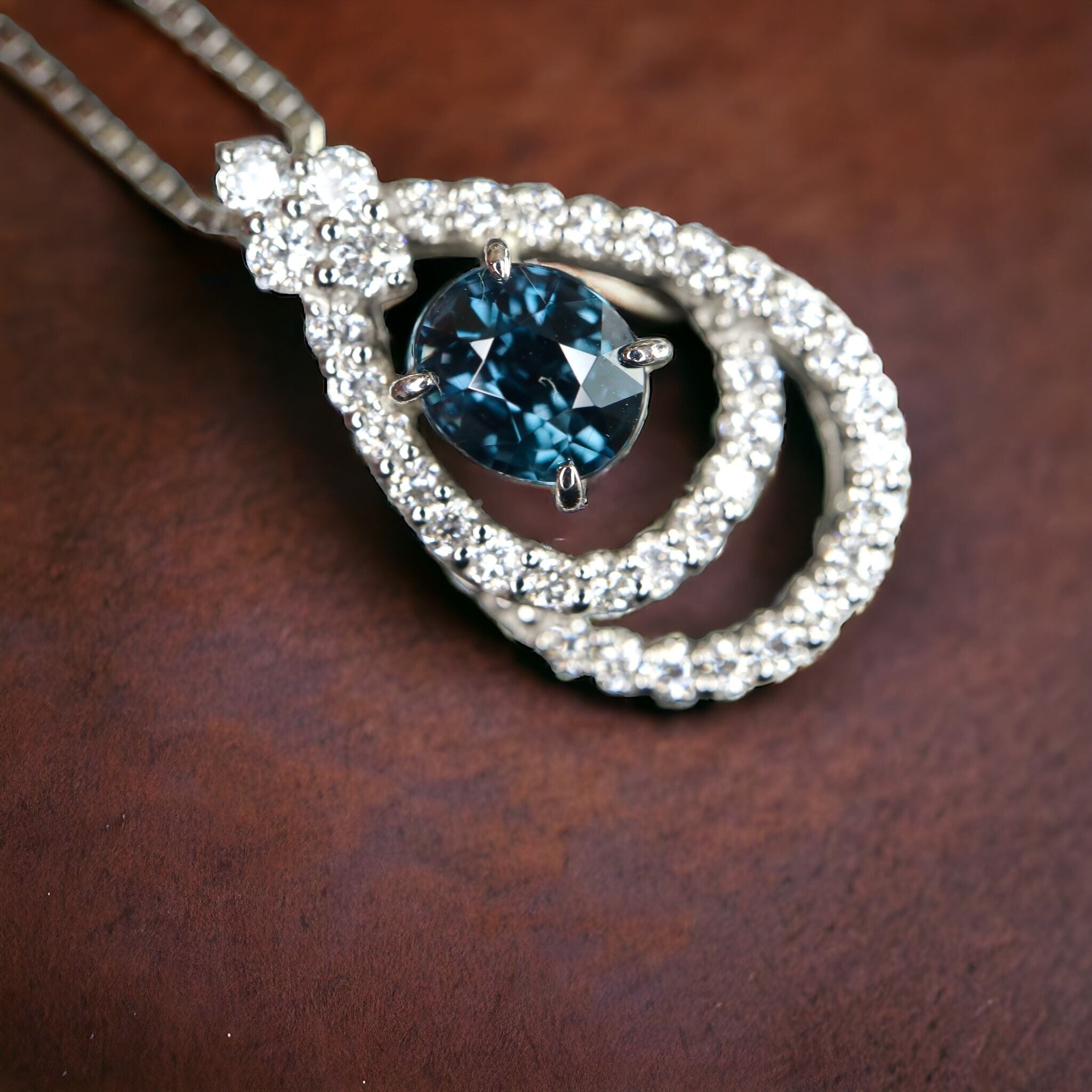 高品質ベキリーブルーガーネットダイヤモンドネックレス