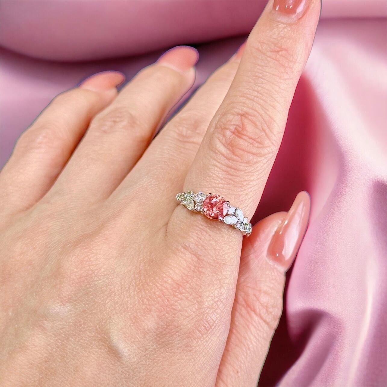蛍光色のような赤とピンクが入り混じりなんとも複雑で印象深い色味と輝きを魅せます。
