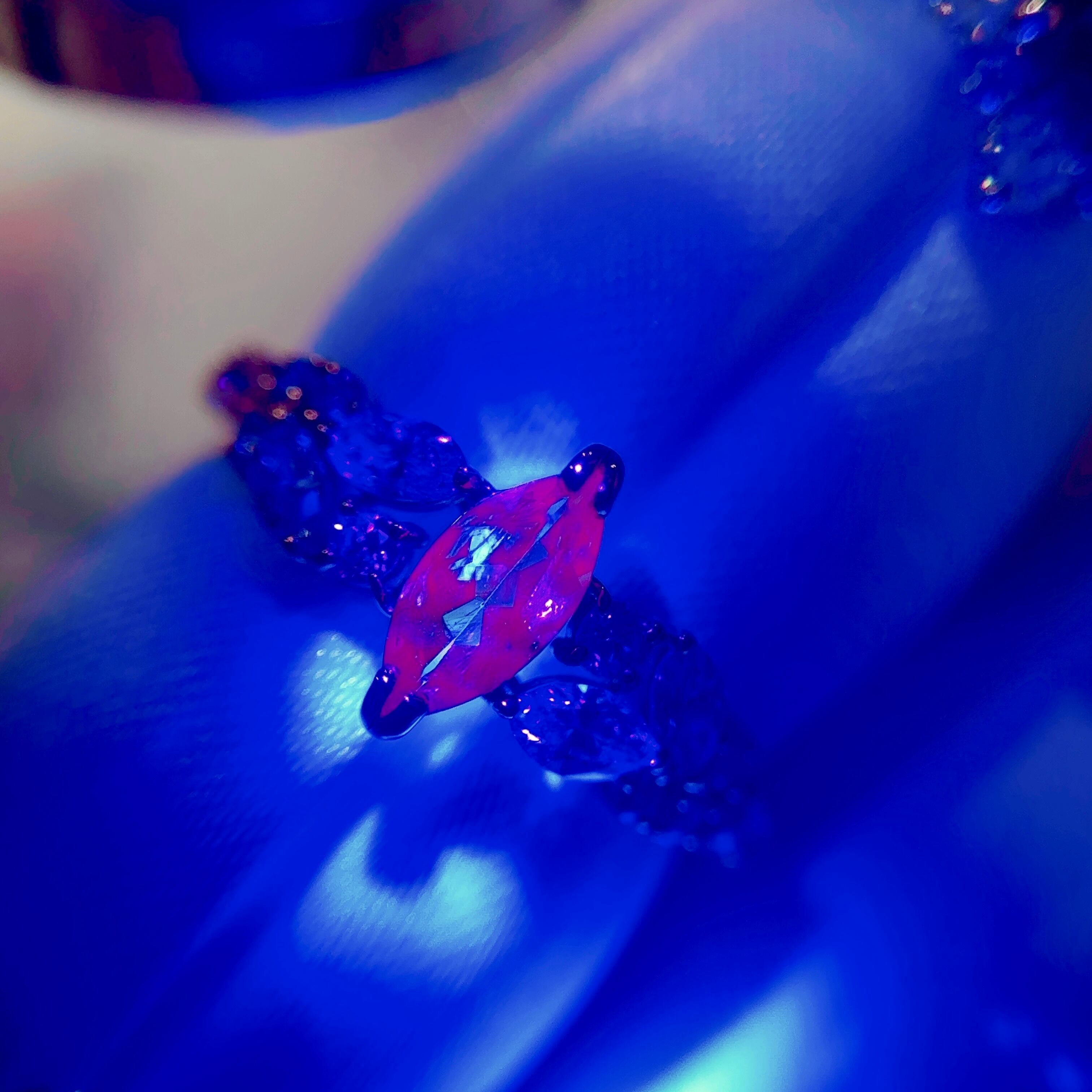 元々はUV蛍光する宝石ではございませんが、メラニア鉱山の産出されるものは蛍光するのでこれも非常に稀になります。