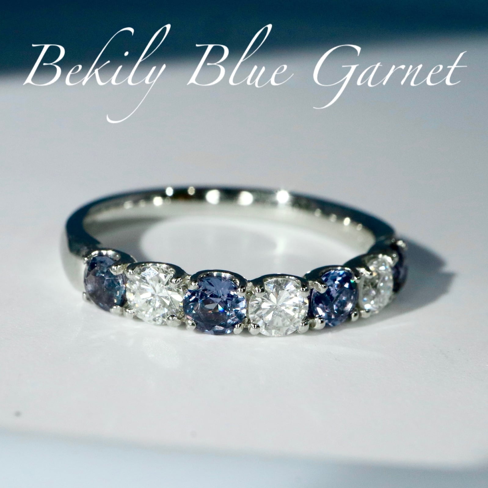 品質の良いベキリーブルーガーネットとダイヤモンドのハーフエタニティリング✨