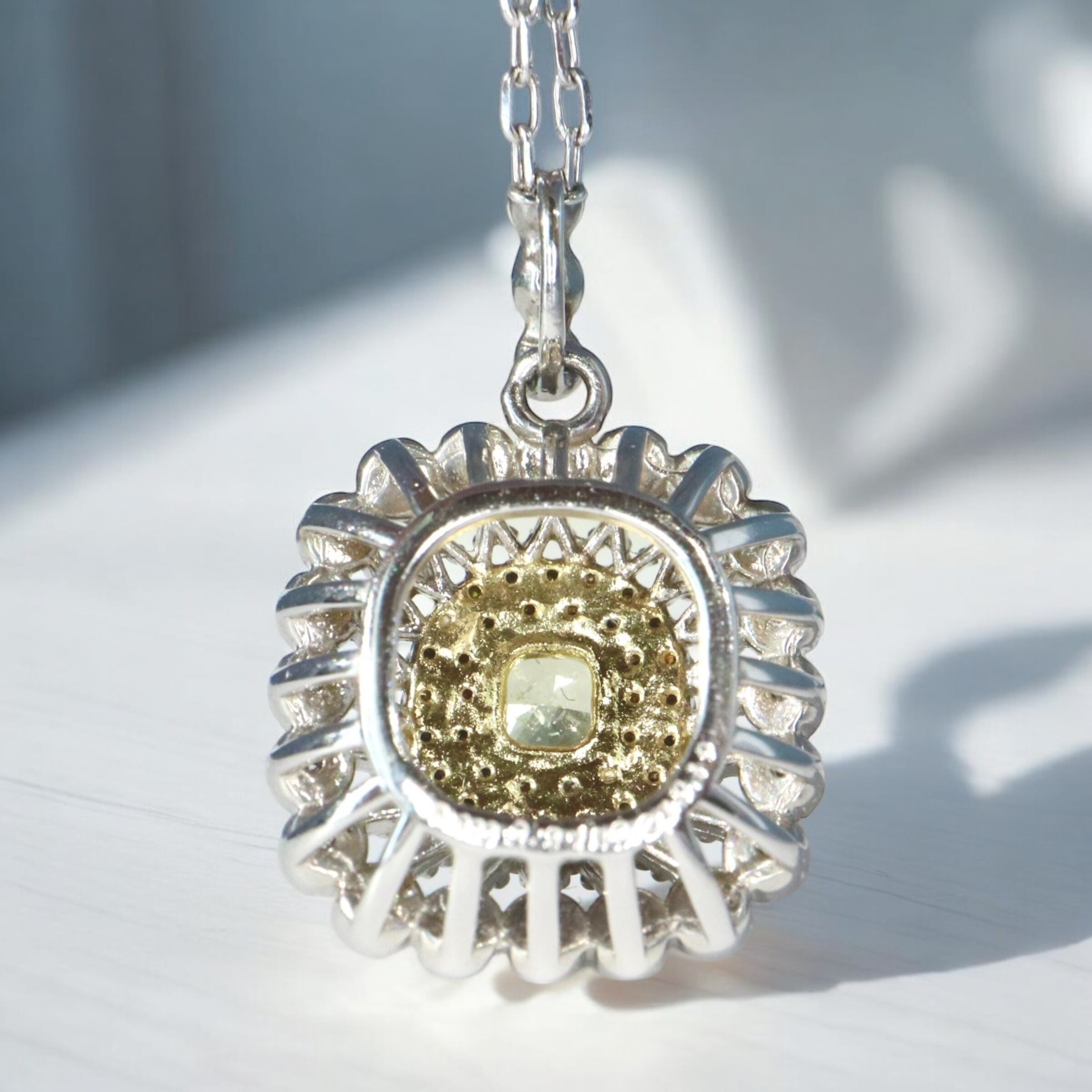 pt900イエローダイヤモンドスクエア透かしデザインダイヤモンドネックレス