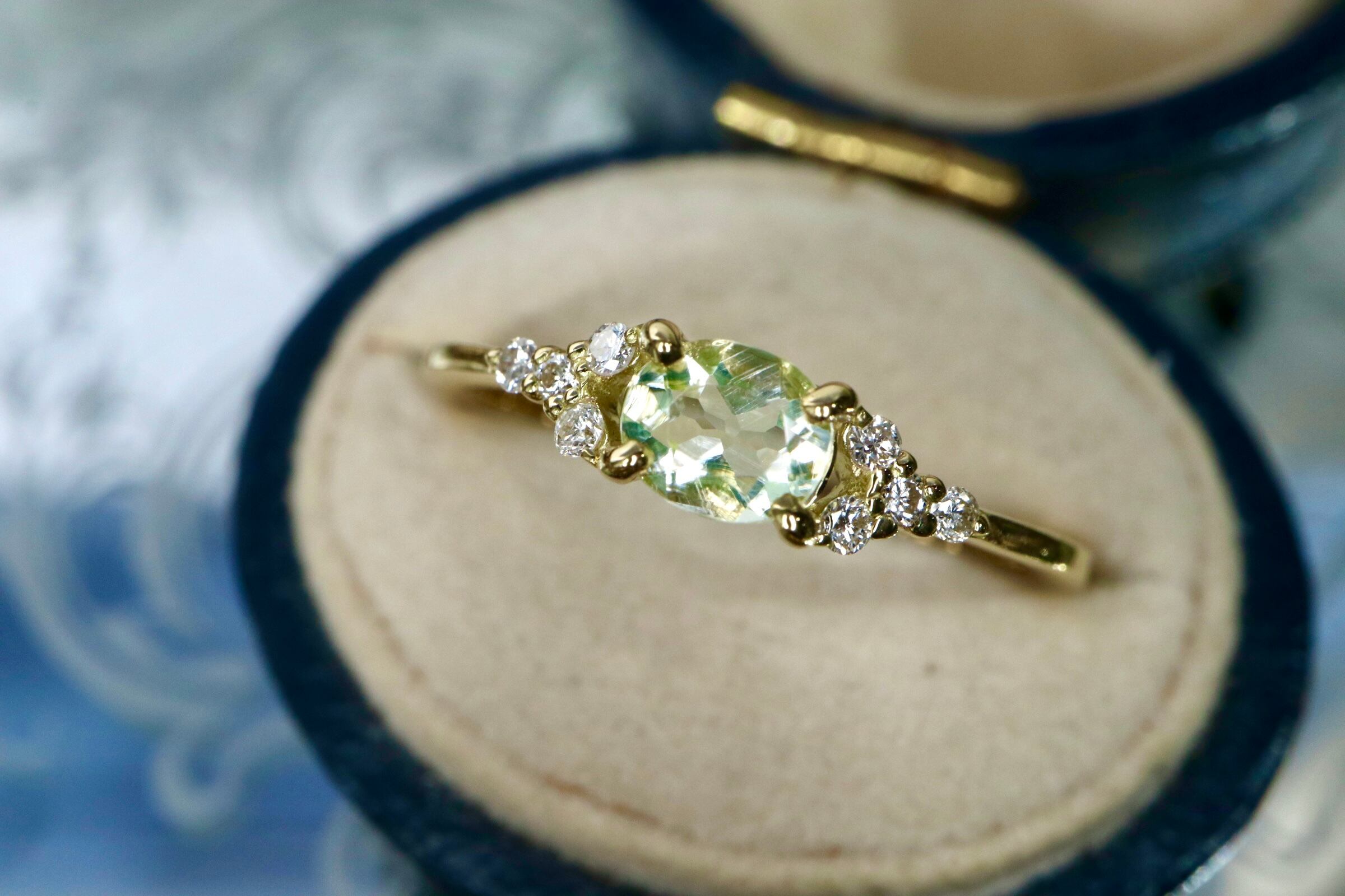上質なハイアライトオパールをお楽しみいただきたくリングもK18YGでclassicalなデザインに。