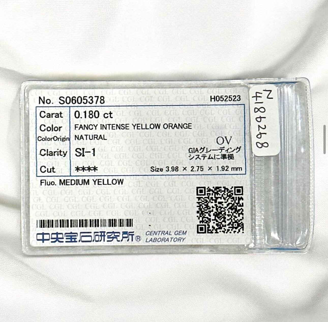 ◯イエローオレンジダイヤモンド0.18ct