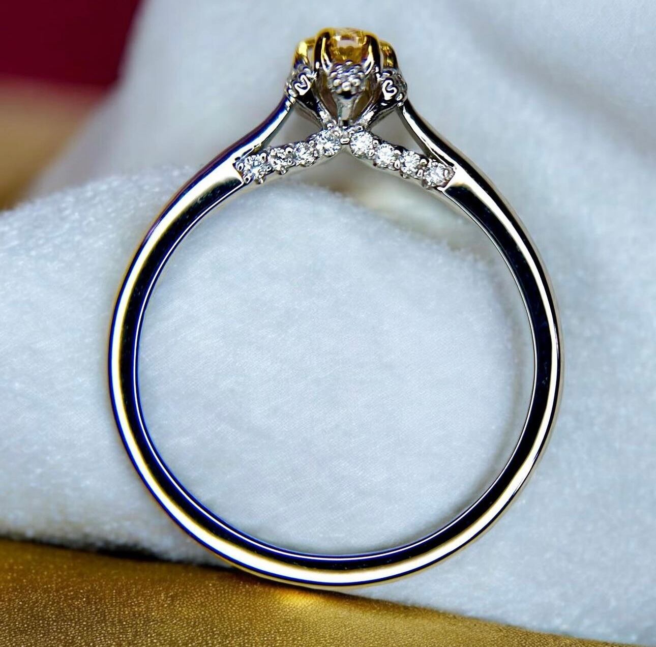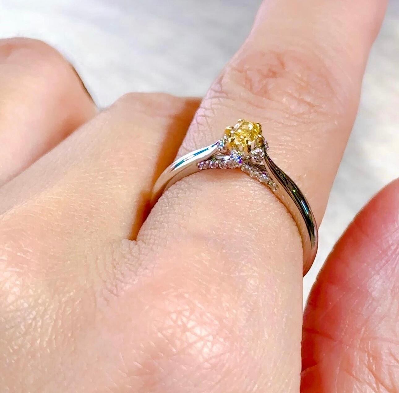 pt950イエローオレンジダイヤモンドフラワーデザインリング0.18ct /0.10ct