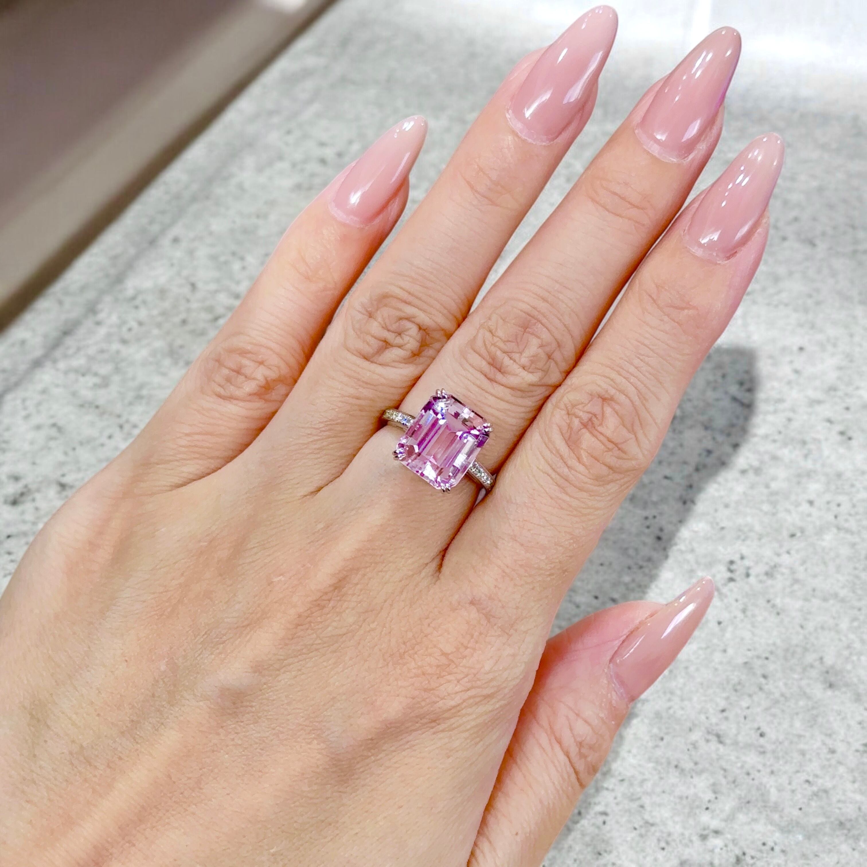 クンツァイトエメラルドカットダイヤモンドリングpt9007.45ctD0.123ct