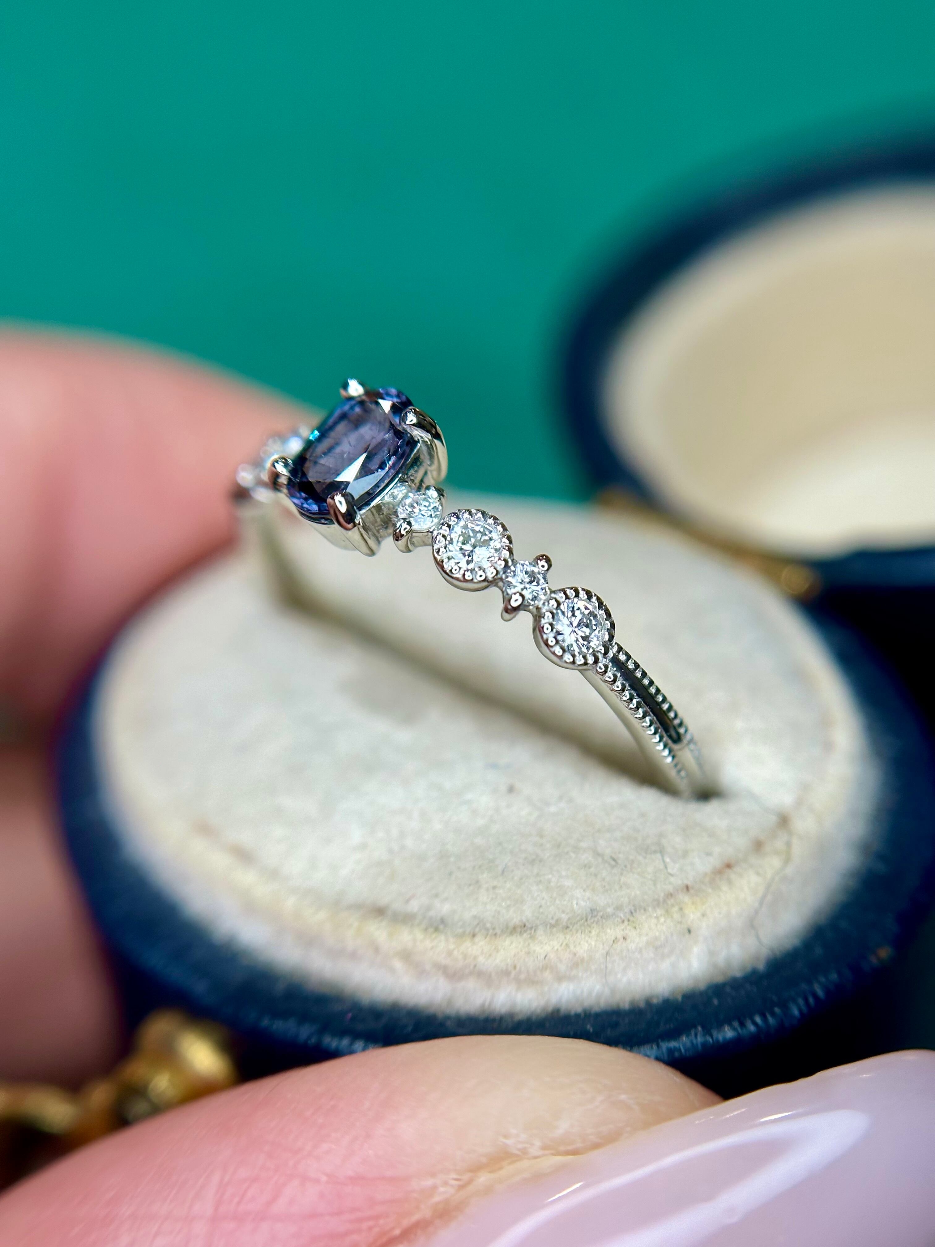 pt950ベキリーブルーガーネットダイヤモンドリング
