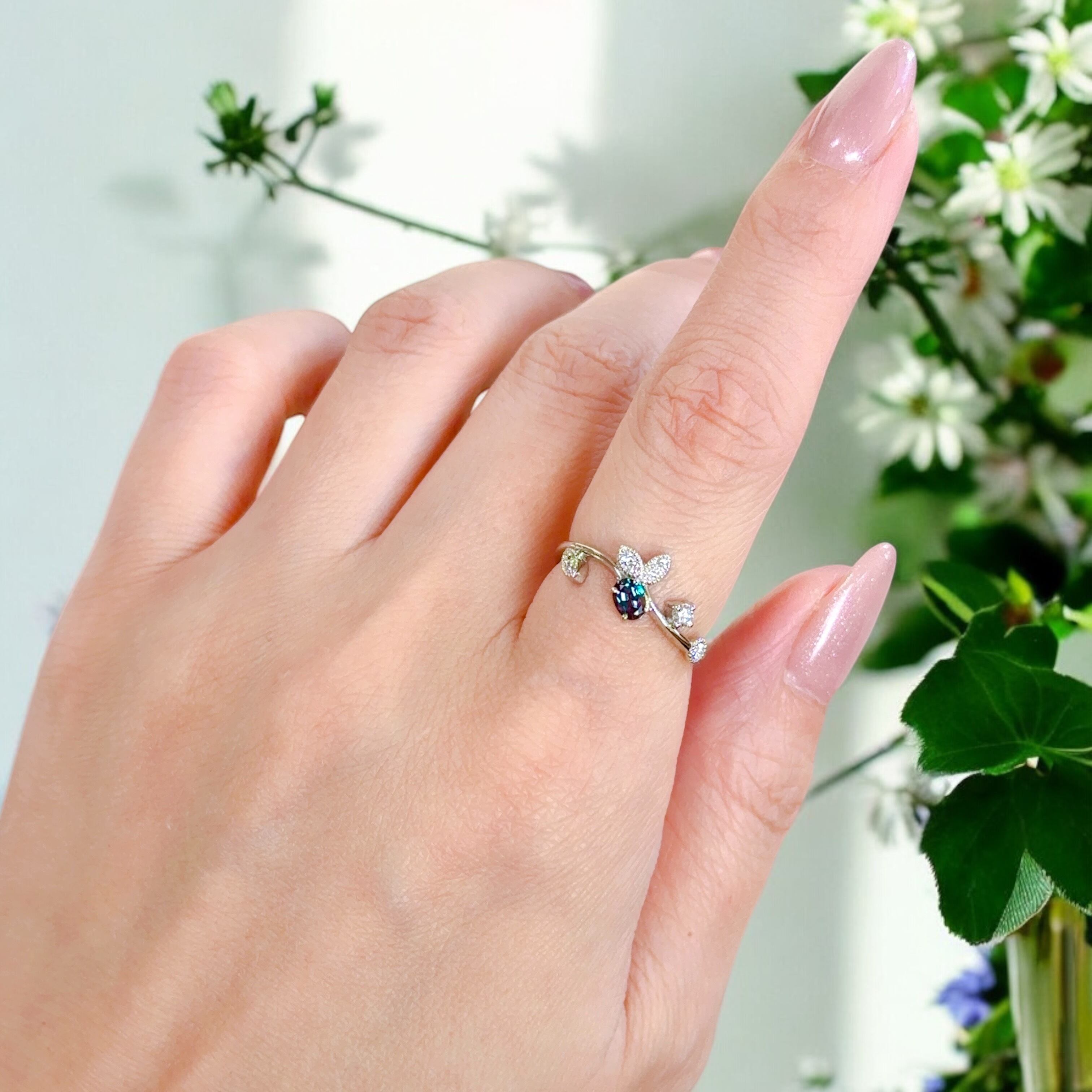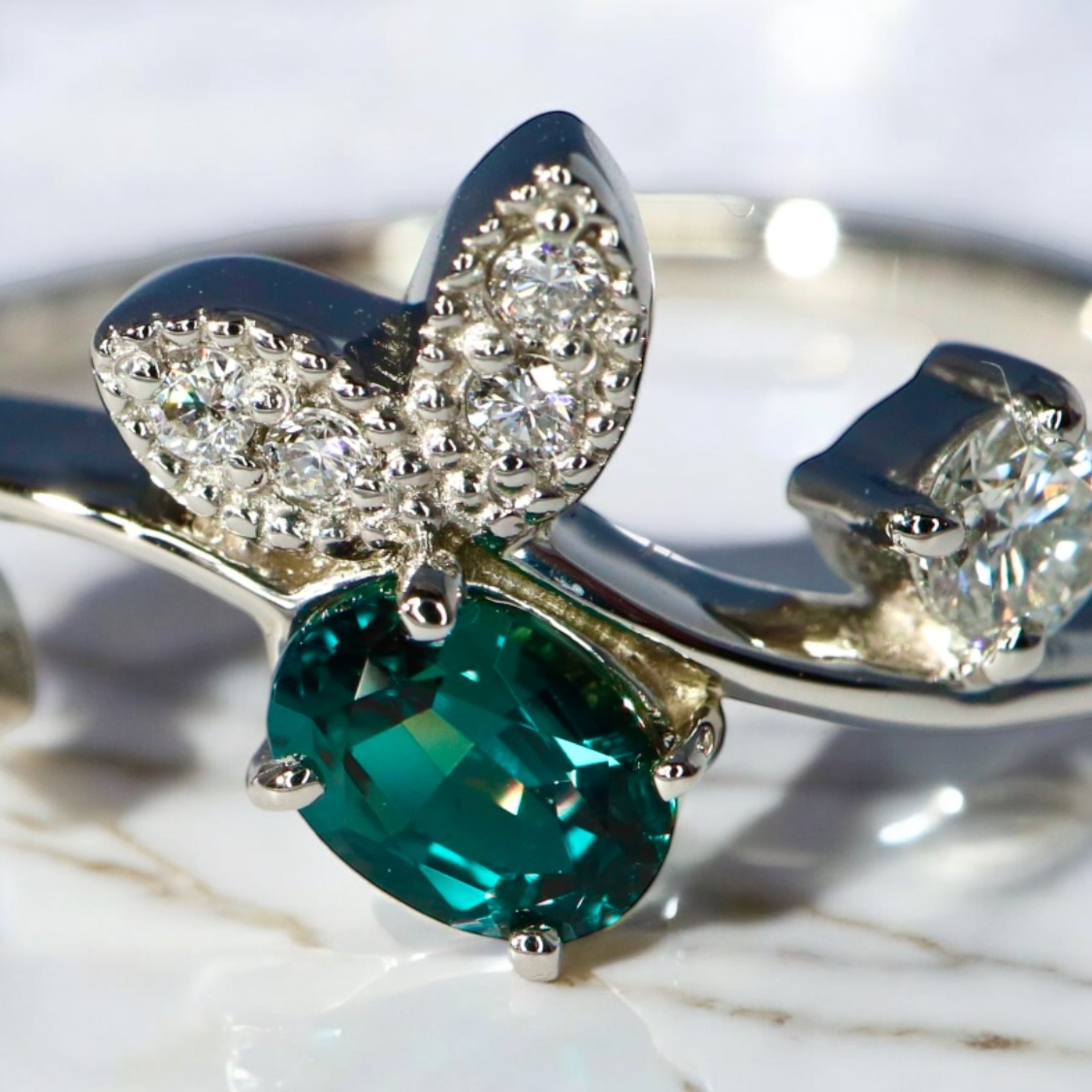 高品質アレキサンドライトリーフデザインダイヤモンドリング