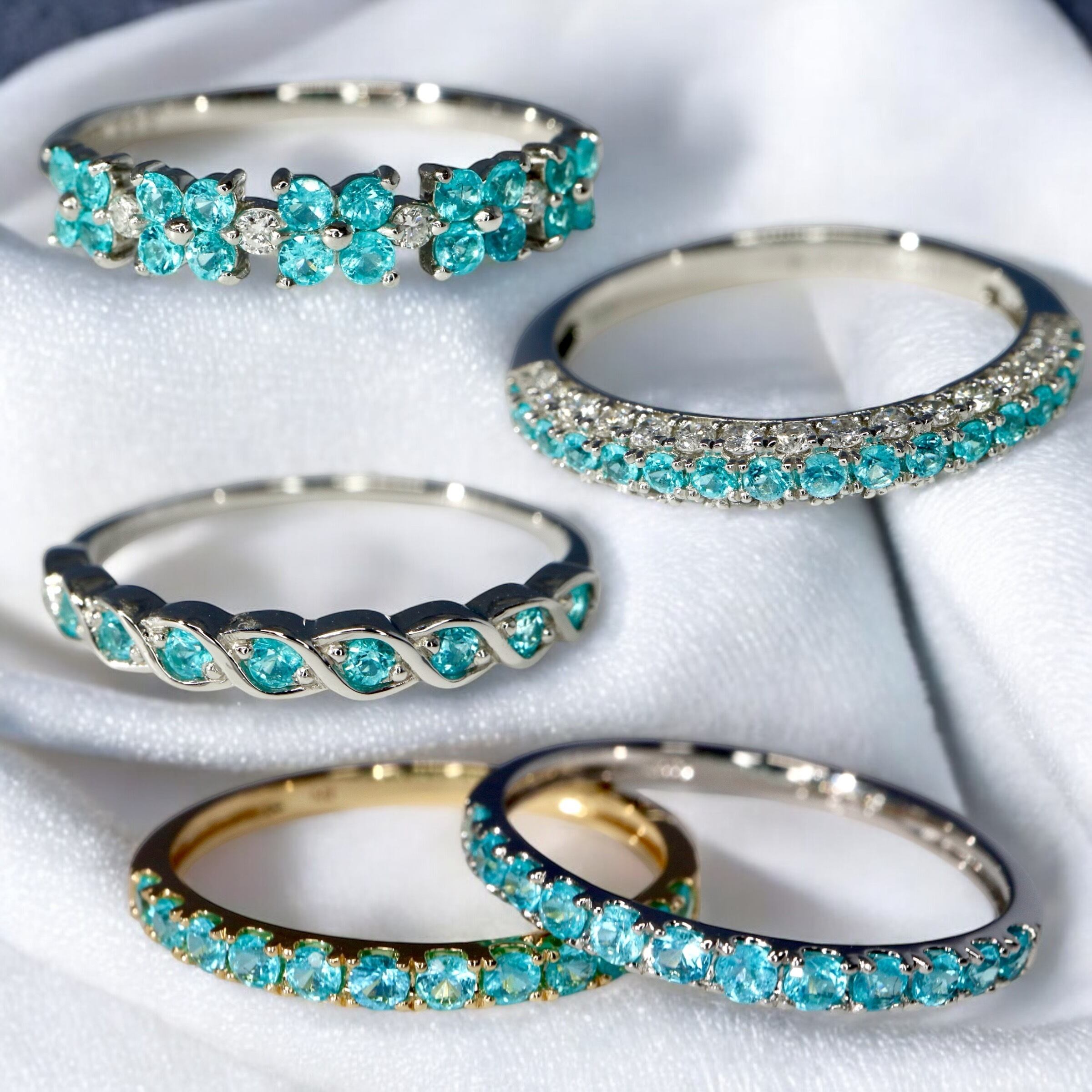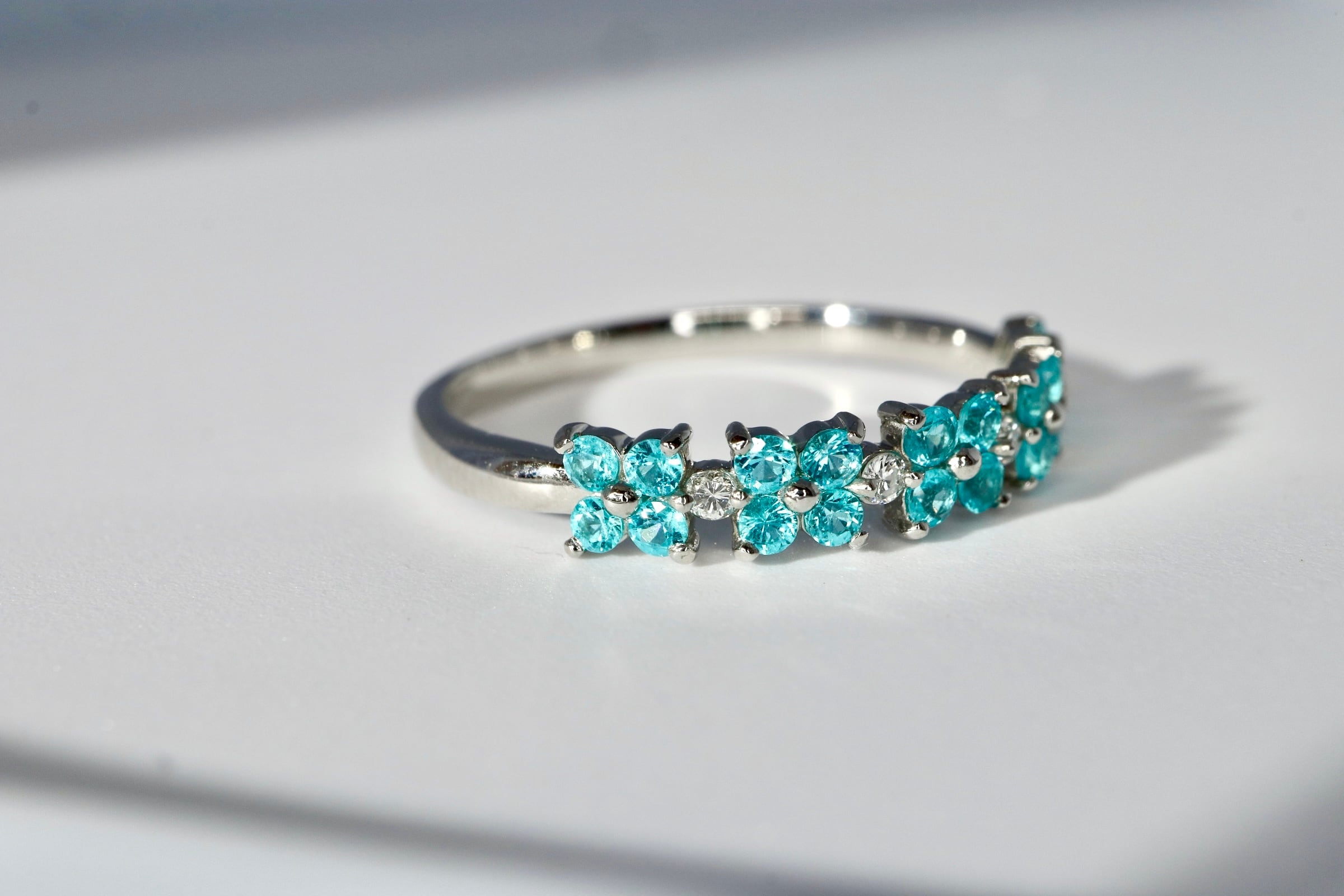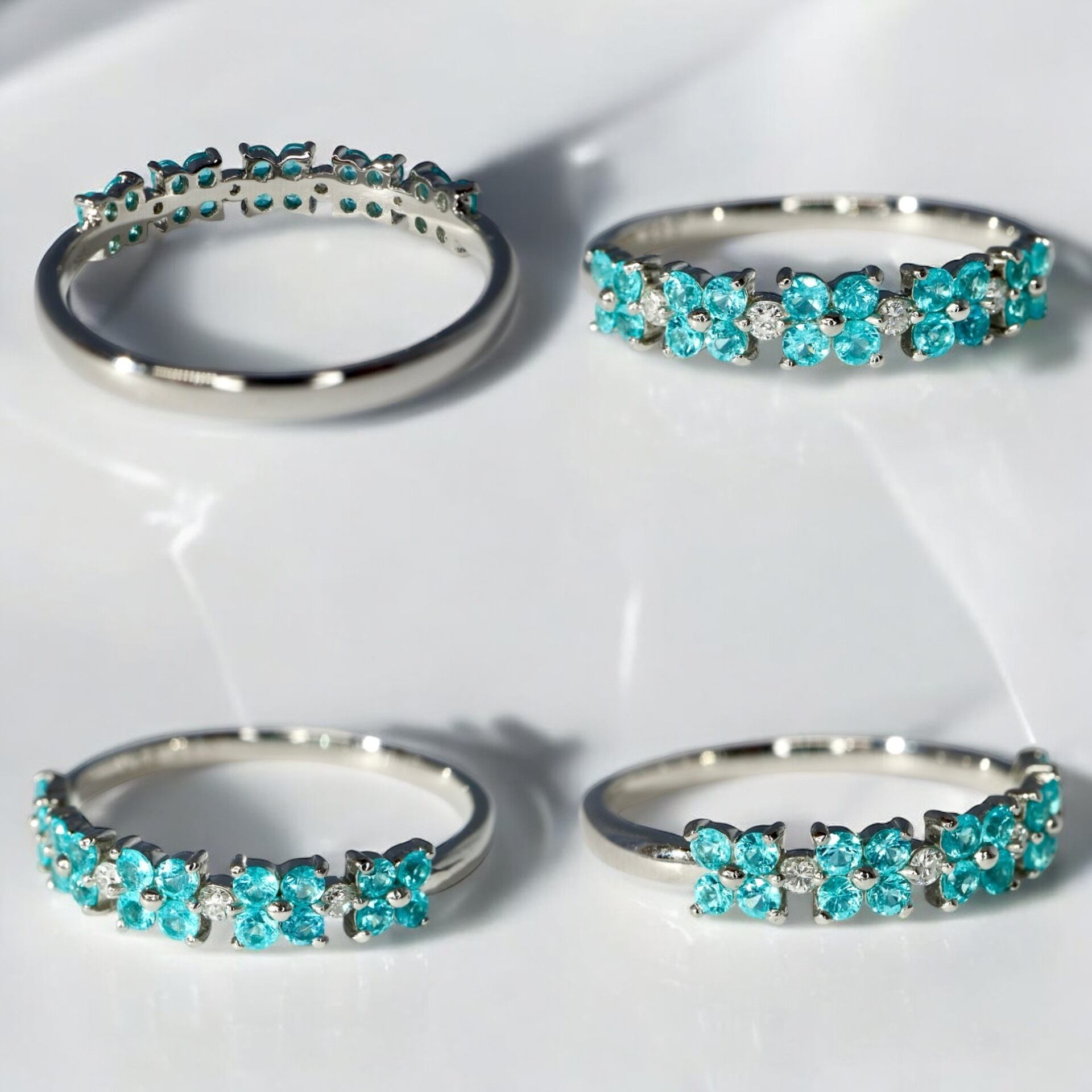 お指を見るたびにお花のパライバトルマリン達ががずらりと連なりこの美しさはときめかずにいられません。