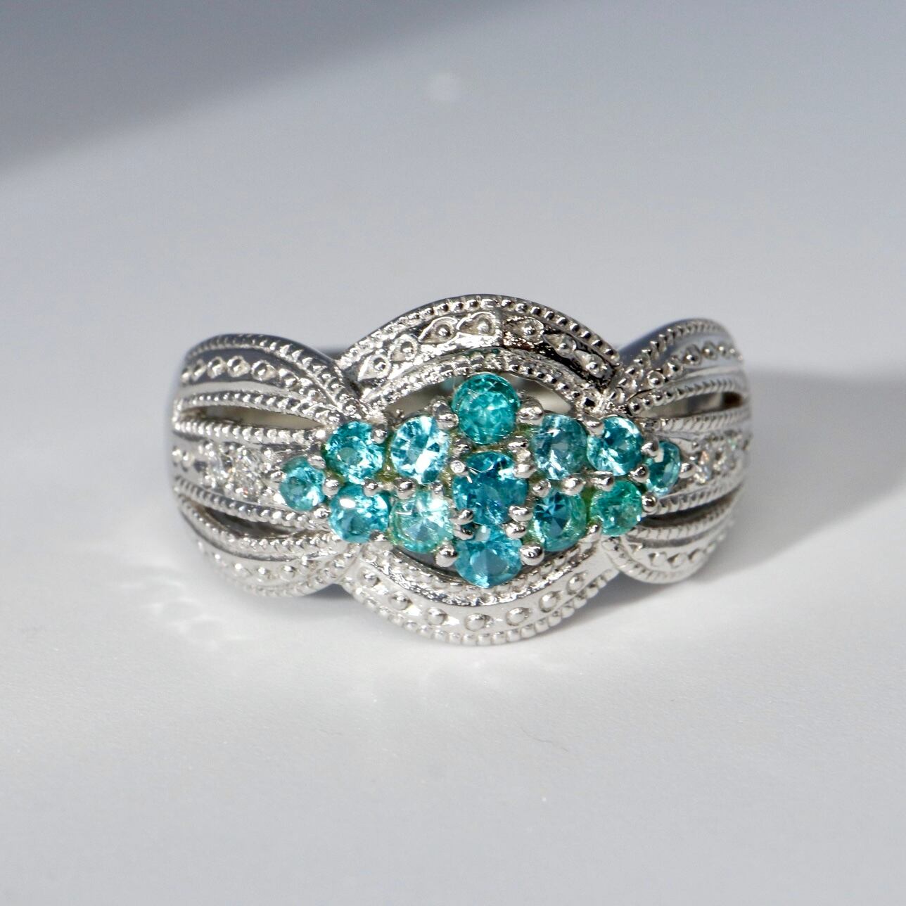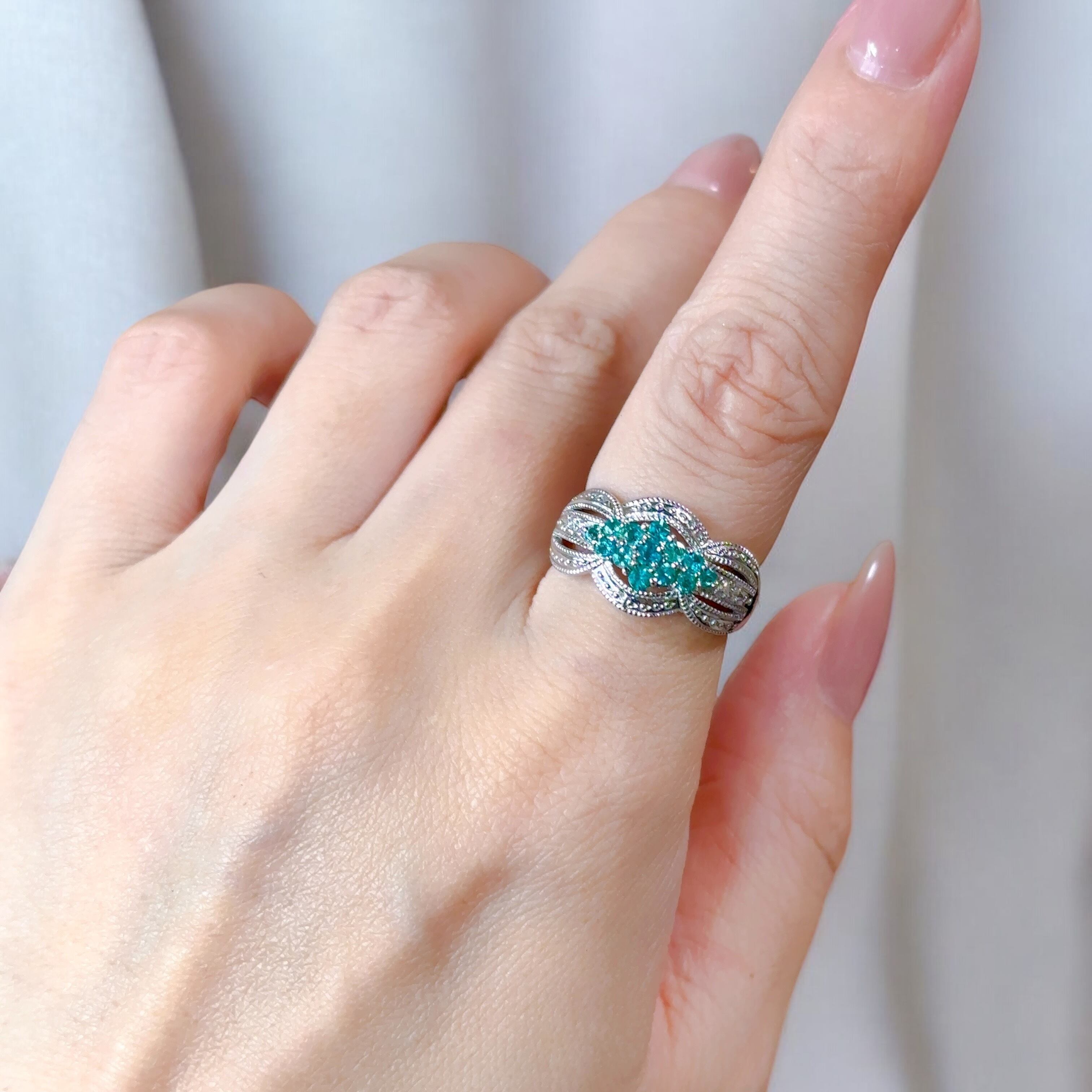 パライバトルマリン透かしダイヤモンドリング
