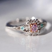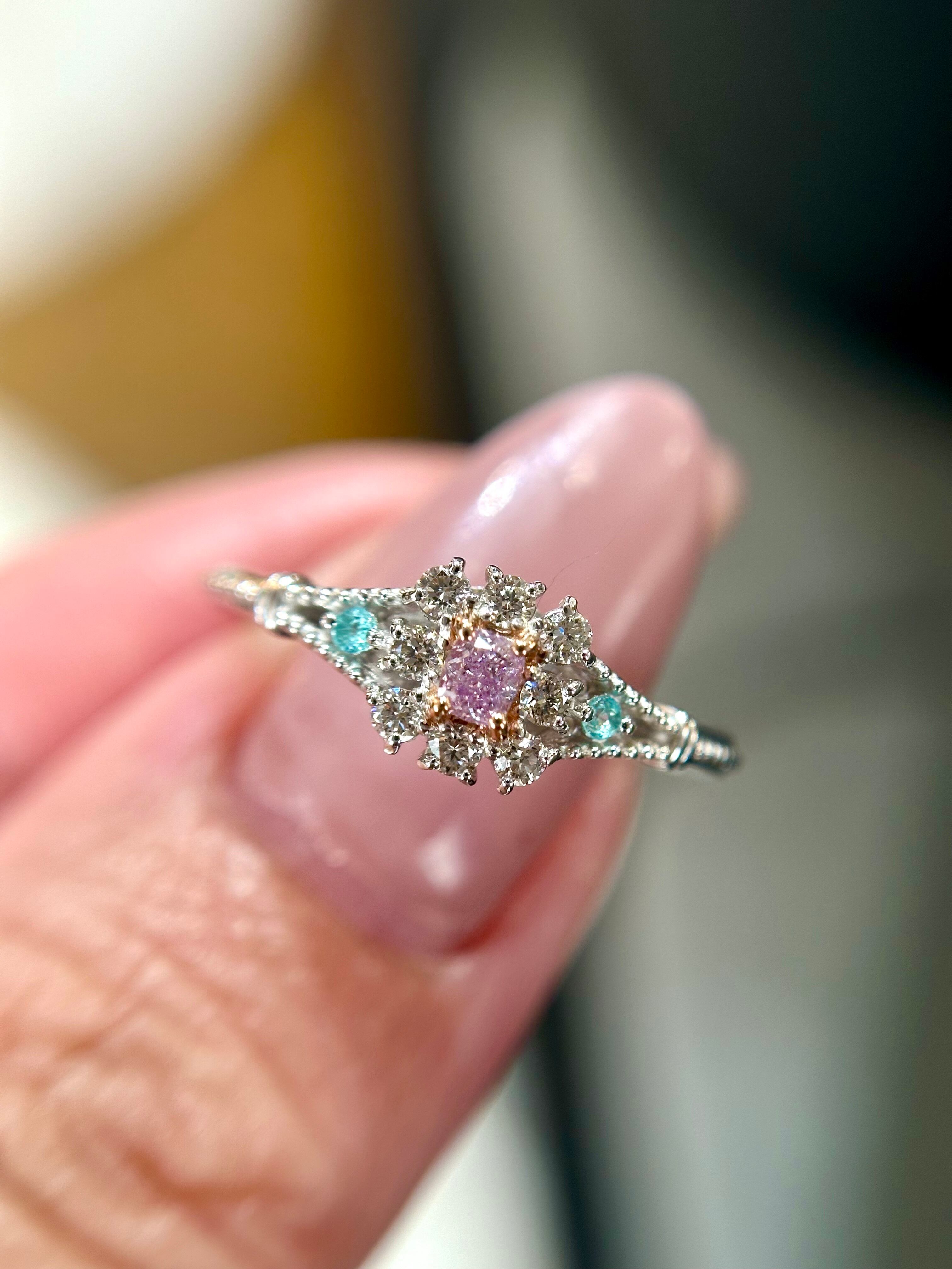 このピンキッシュパープルダイヤは肉眼でハッキリした非常に美しい色合いです。
