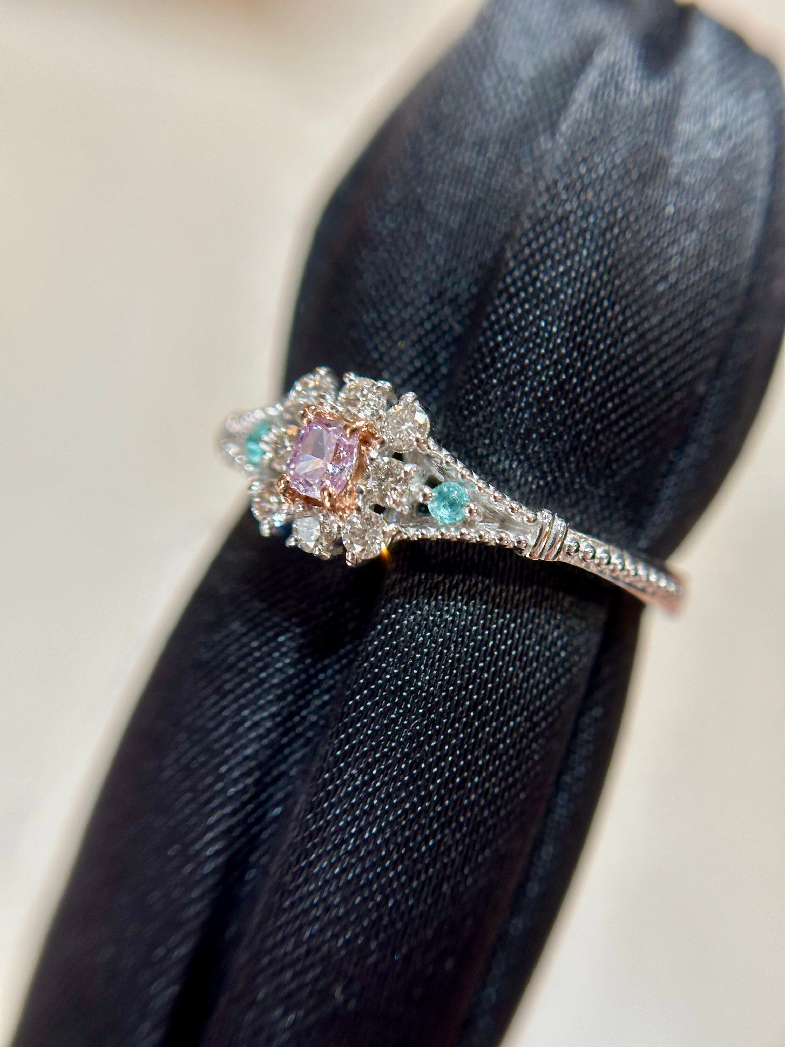 ピンクダイヤモンドの石座やお爪はK18PG。