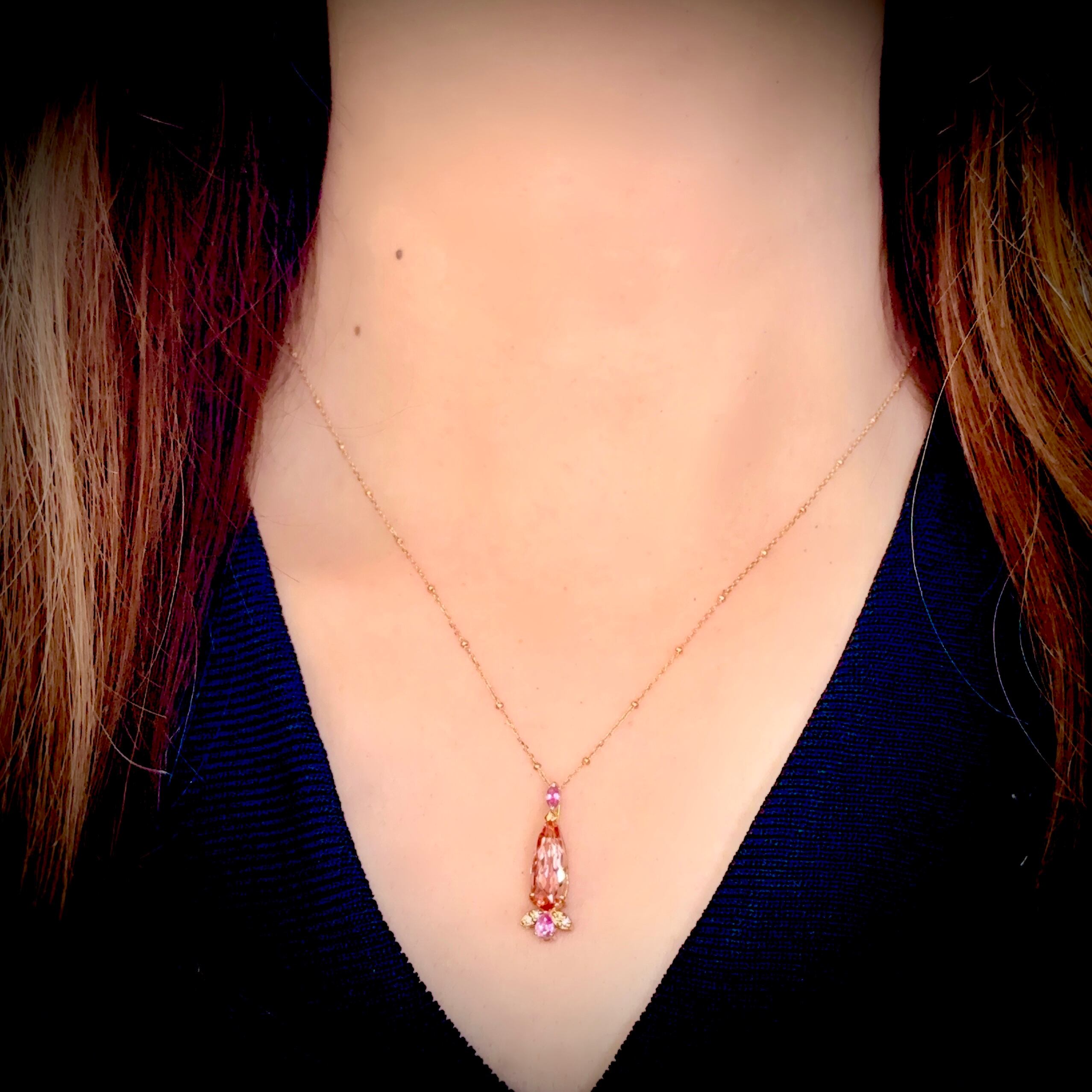 K18PG高品質インペリアルトパーズ&ピンクサファイアダイヤモンドネックレス