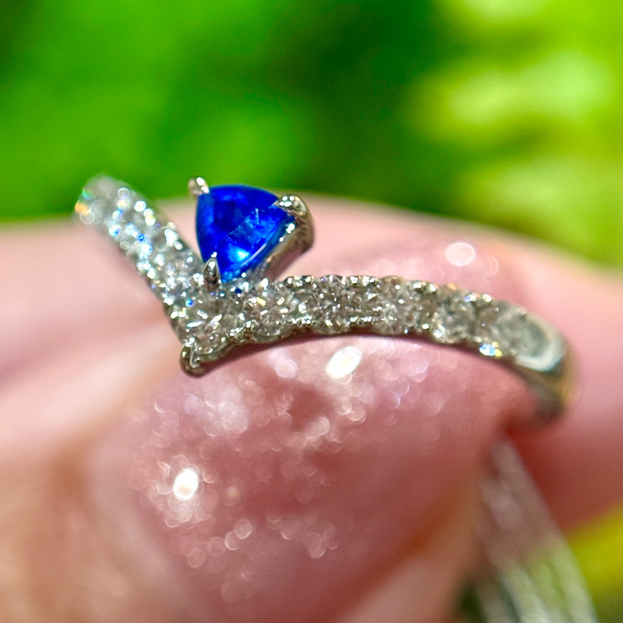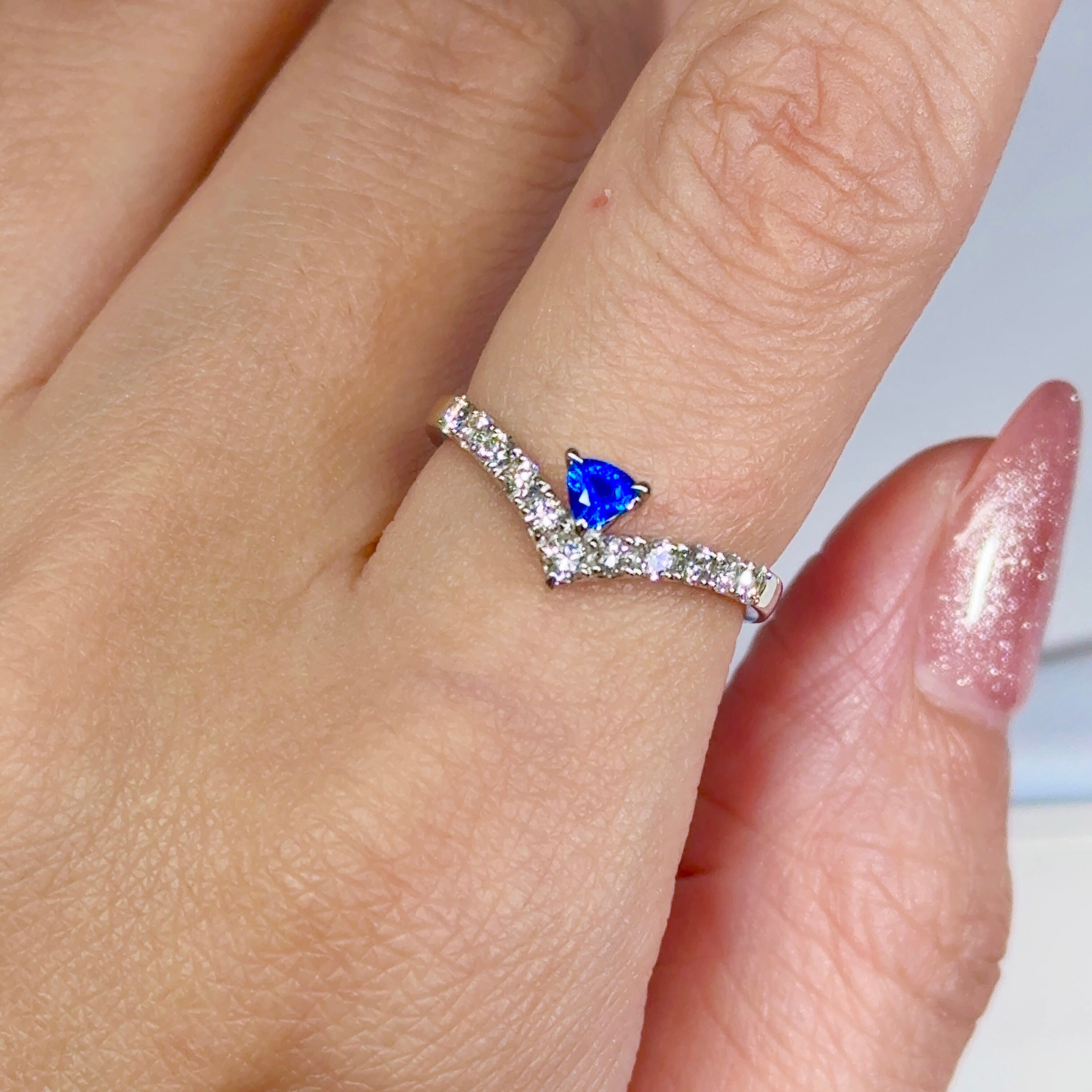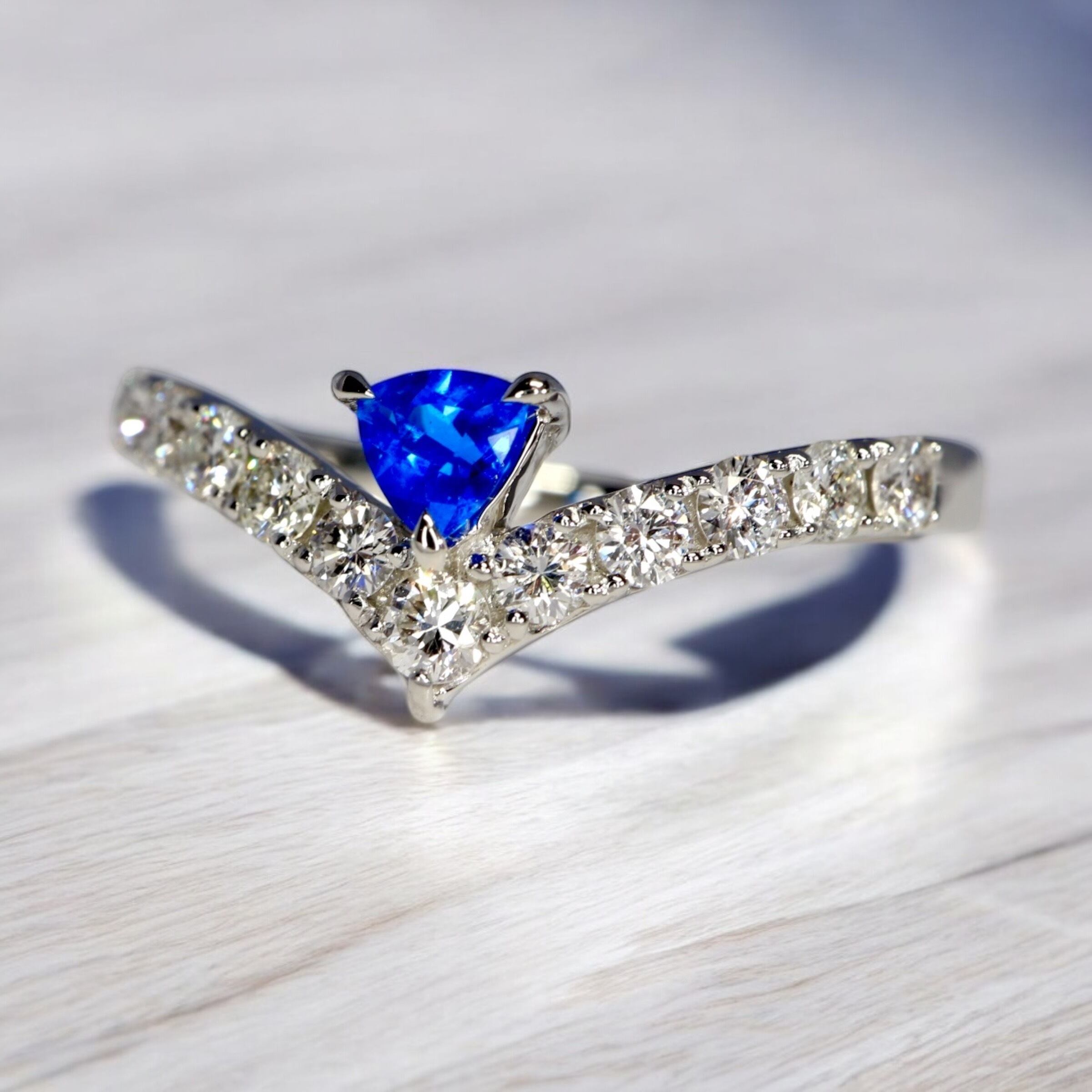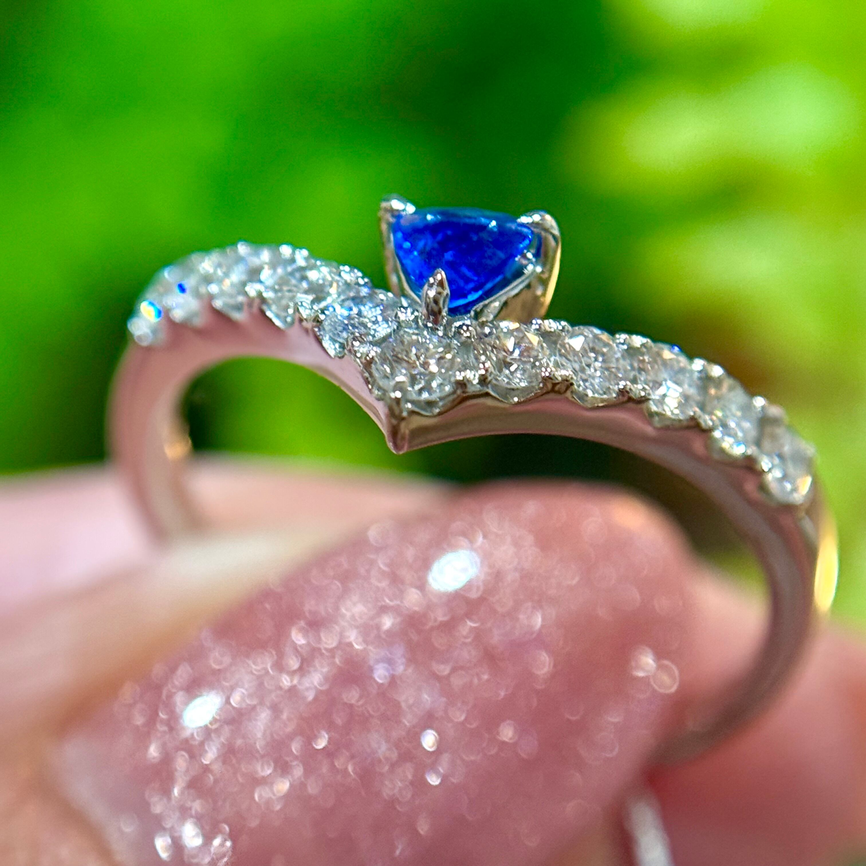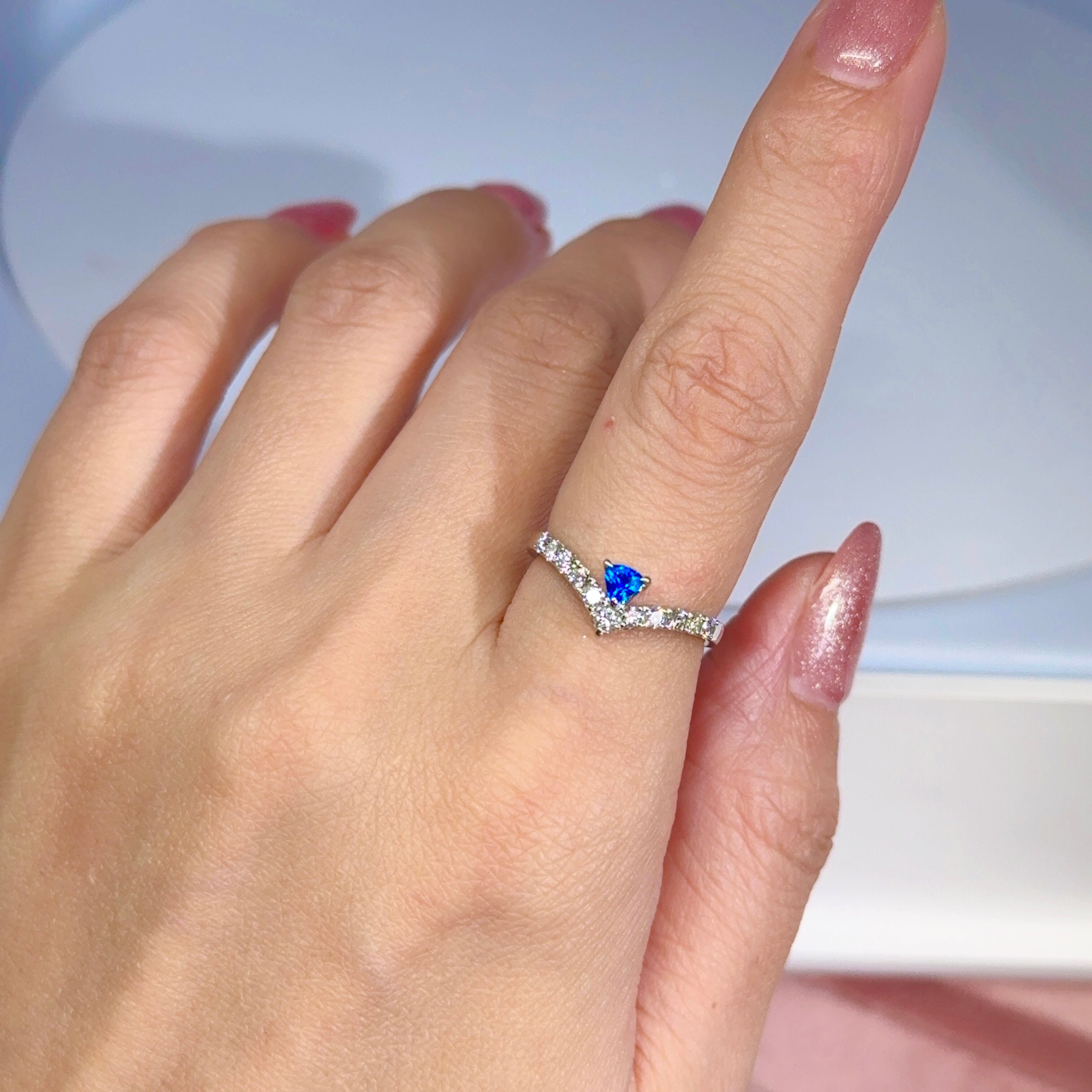 このダイヤモンドの純白な煌めきによってアウイナイトのヴィヴィッドブルーがより一層強まります。