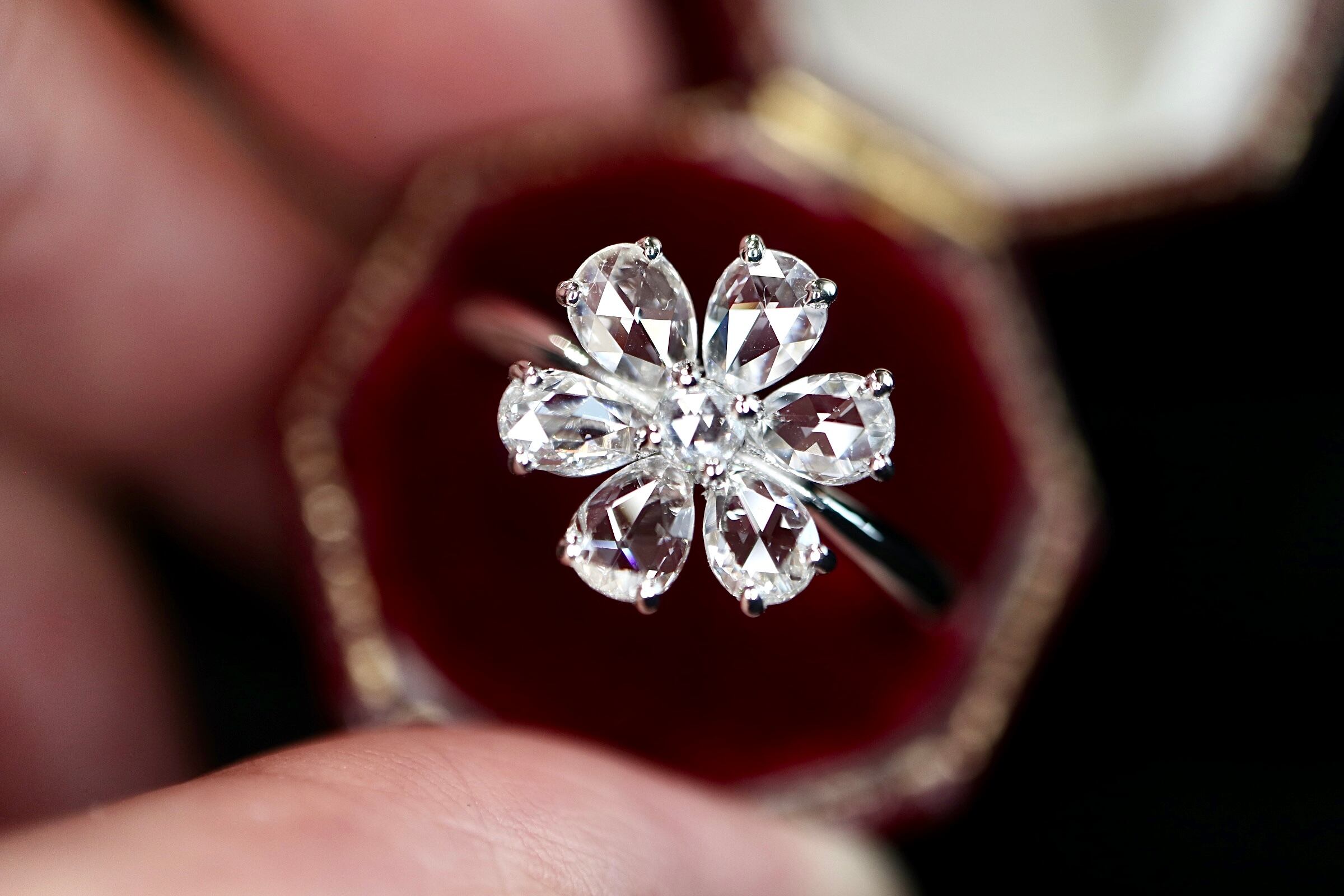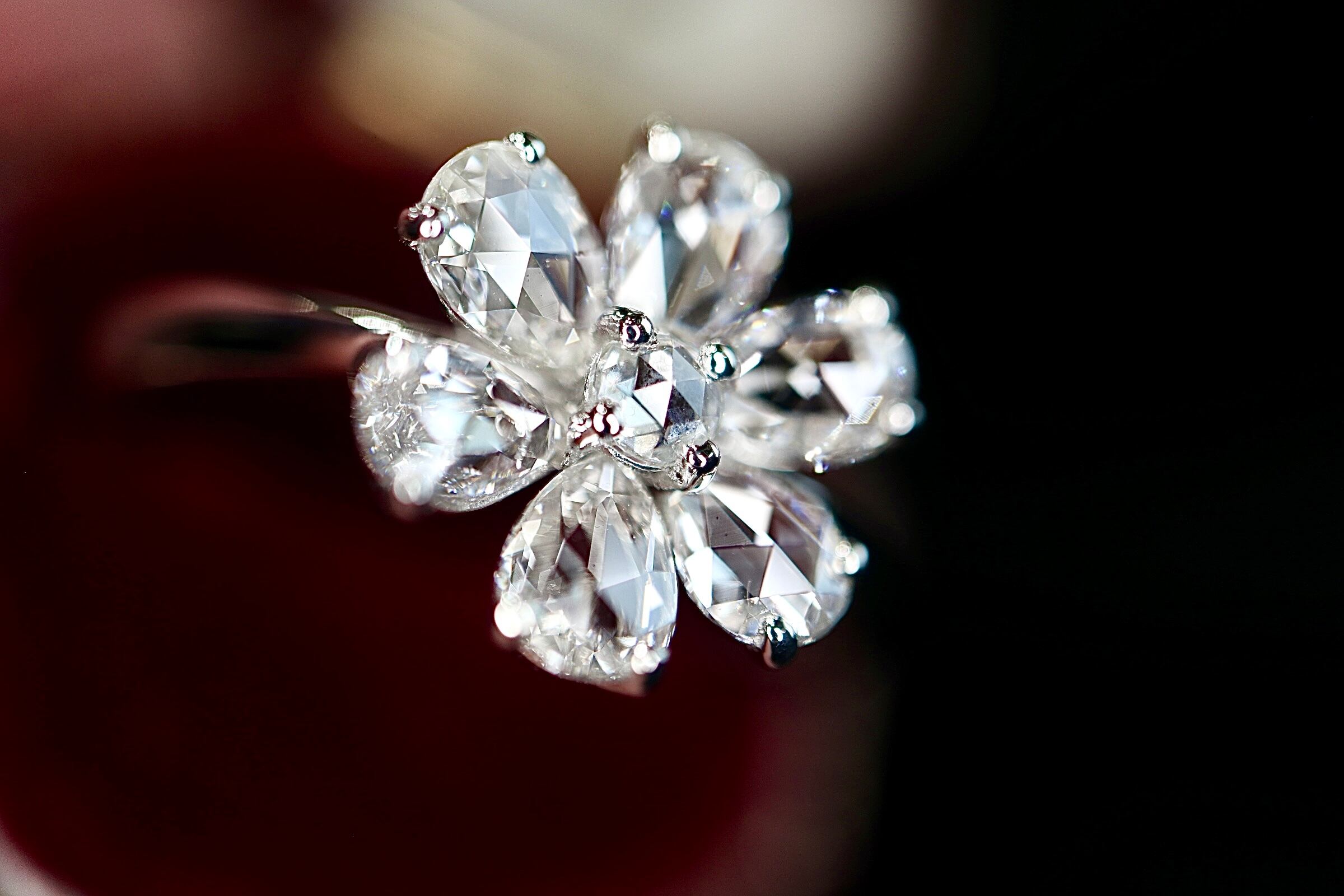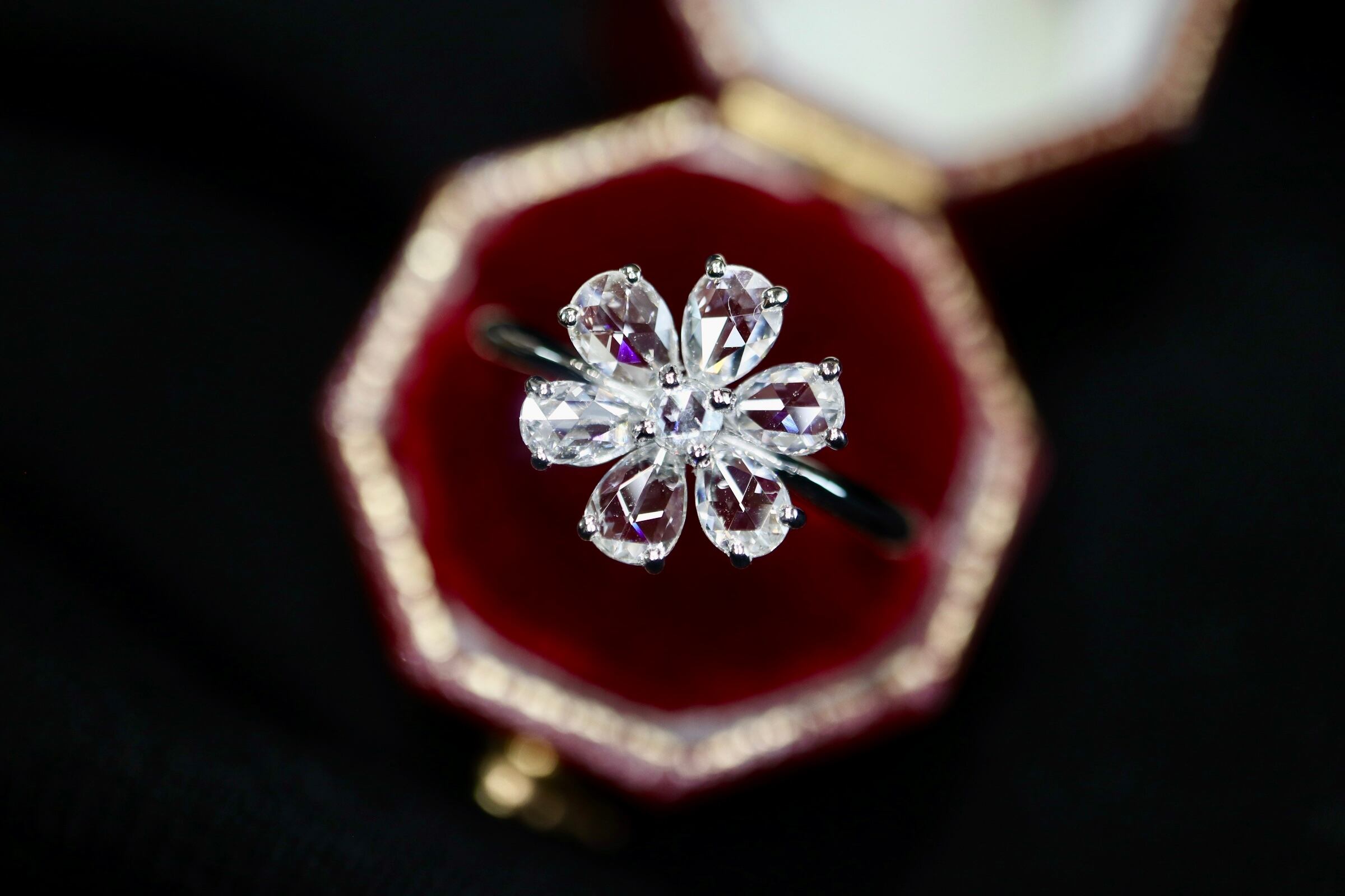 高品質ローズカットダイヤモンドフラワーデザインリングpt9000.68ct